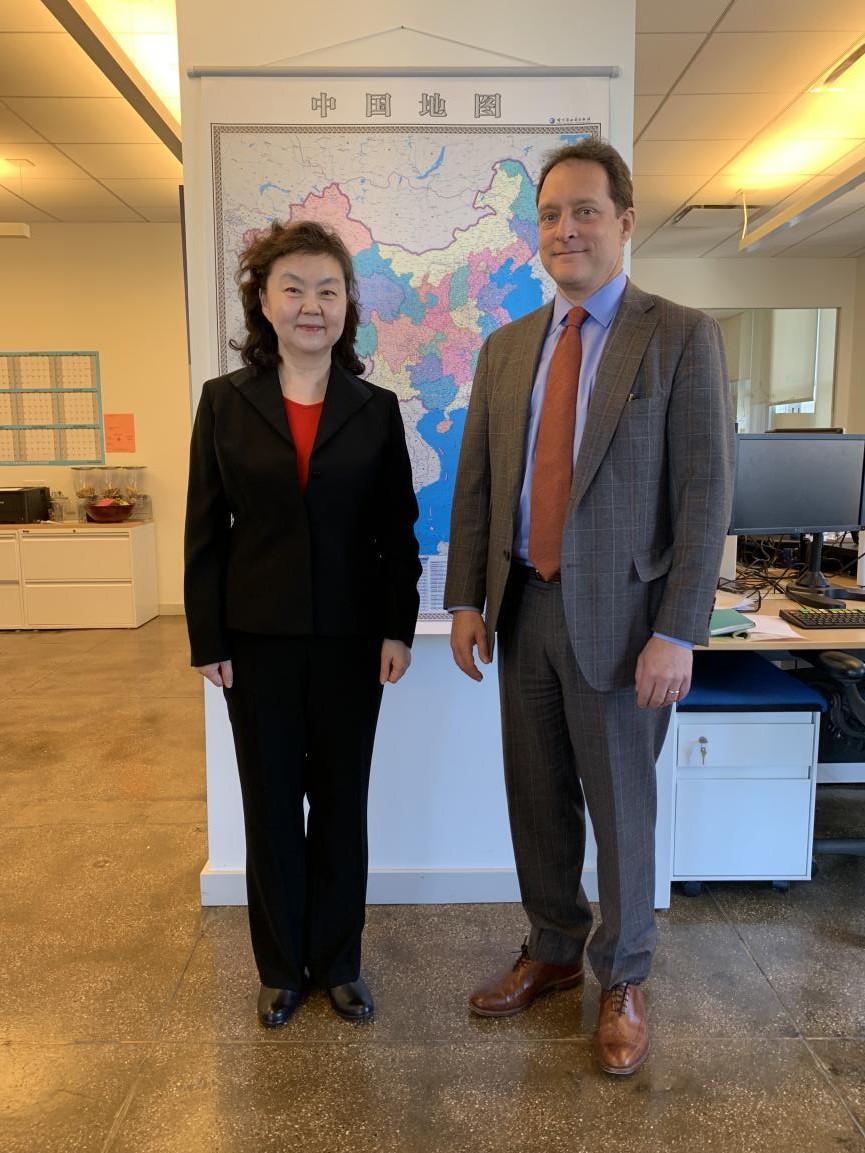3月4日,顾春芳参赞走访美国经济研究公司荣鼎集团(Rhodium Group),与该集团创始合伙人荣大聂(Daniel H. Rosen)等人进行会谈。双方主要就中美经贸合作、中国企业在美国投资等进行交流。